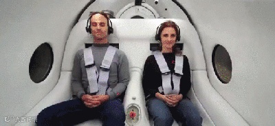 他们在公司名为 PegASUS 的闪着白光和红色的超级高铁车厢里坐好后,被转移到一个气闸中,之后封闭真空管里的空气被移除。