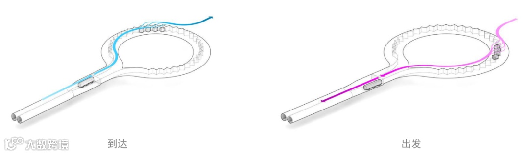 到达时原理一样,运输机离开轨道,吊舱从中分离,回到城市街道层,将乘客送到目的地。