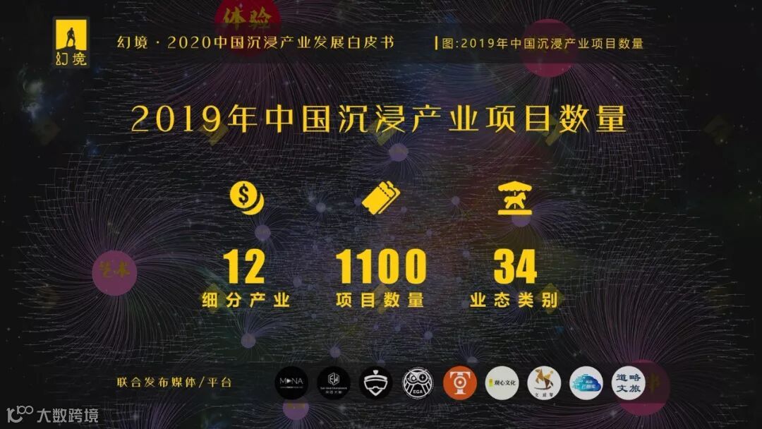 需要说明的是,关于2019年中国沉浸产业的项目数量,幻境统计方式较为保守:首先,内容一致或仅作小幅变更的全国连锁或巡展巡演型项目仅被计数为1;其次,幻境对于待统计项目的沉浸深度进行了过滤,许多项目也因此并未被统计在列。如针对虚拟现实线下体验市场,开在民宅中的消费级体验项目均未被统计在列;如针对剧本杀、谋杀之谜游戏,未有实景搜证的桌面体验均未被统计在列;以此类推,不逐一列举。