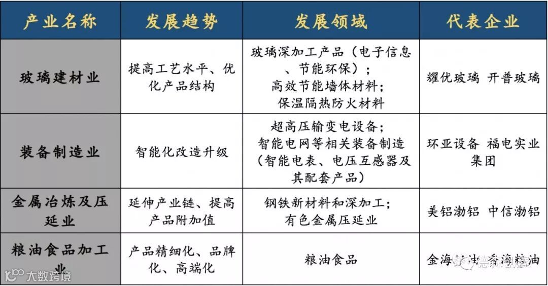 现已形成以玻璃生产及深加工、装备制造、金属压延、食品加工等传统优势产业为主导的工业集群。