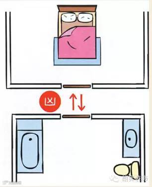 房门对到厕所门,会造成骨骼与肌肉的病痛及钱财流失。厕所是湿气、臭气、秽气产生的地方,如果房门对到厕所门,刚好全部接收(尤其是强风倒灌的日子)。