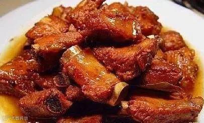 (3)勺内汁卤加宽油,烧至七层热时,把肉段下勺内炸成金黄酥脆时捞出。
