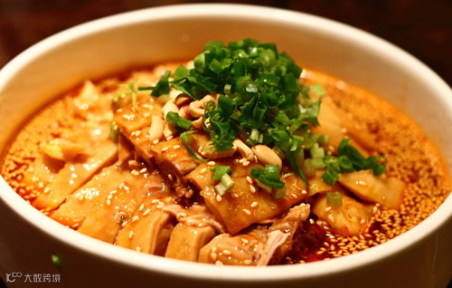 4、鸡肉斩块,把调好的汁浇在上面,拌匀后进冰箱冷藏30分钟就可以吃了,辣辣麻麻的很好吃