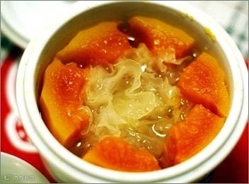 材料:木瓜1个,南北杏1两,白木耳1两,无花果5粒