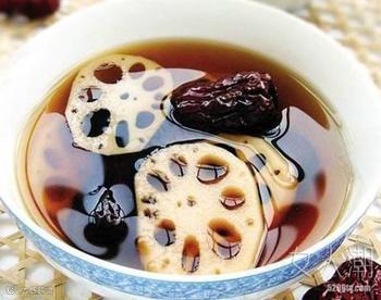 材料:莲藕1斤,红枣20粒,圆肉1两,陈皮1片