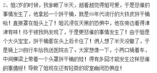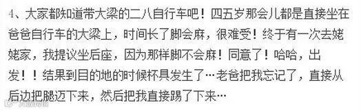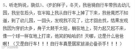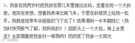 熊孩子的故事看多了,给大家看看熊父母的故事。逛豆瓣的时候看到娃儿们在控诉父母抚养他们长大过程中各种不靠谱行为,对比了一下,突然幸福感倍增。。。