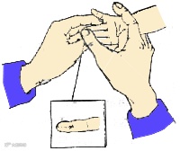【操作】①补肾经:在小指面上旋推,见中图,约补200~400次。②清肾经:自小指尖向指根方向直推,见右图,清100~200次。