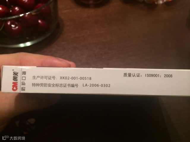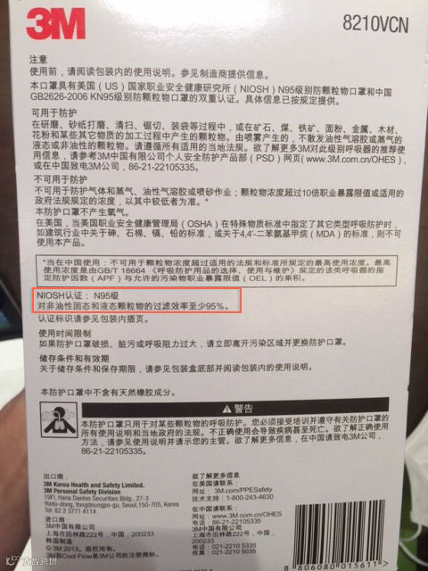 同样,在左下侧也注明了符合国标KN95,虽然有点多此一举,但也体现了3M的严谨及对中国市场的重视。