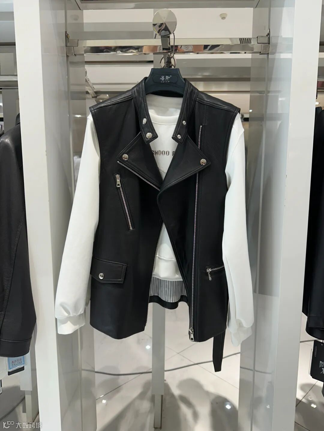 黑色机车风皮衣外套,硬朗的机车风设计增添了一份酷感和不羁,让你在春日里也能散发出率性和自信。