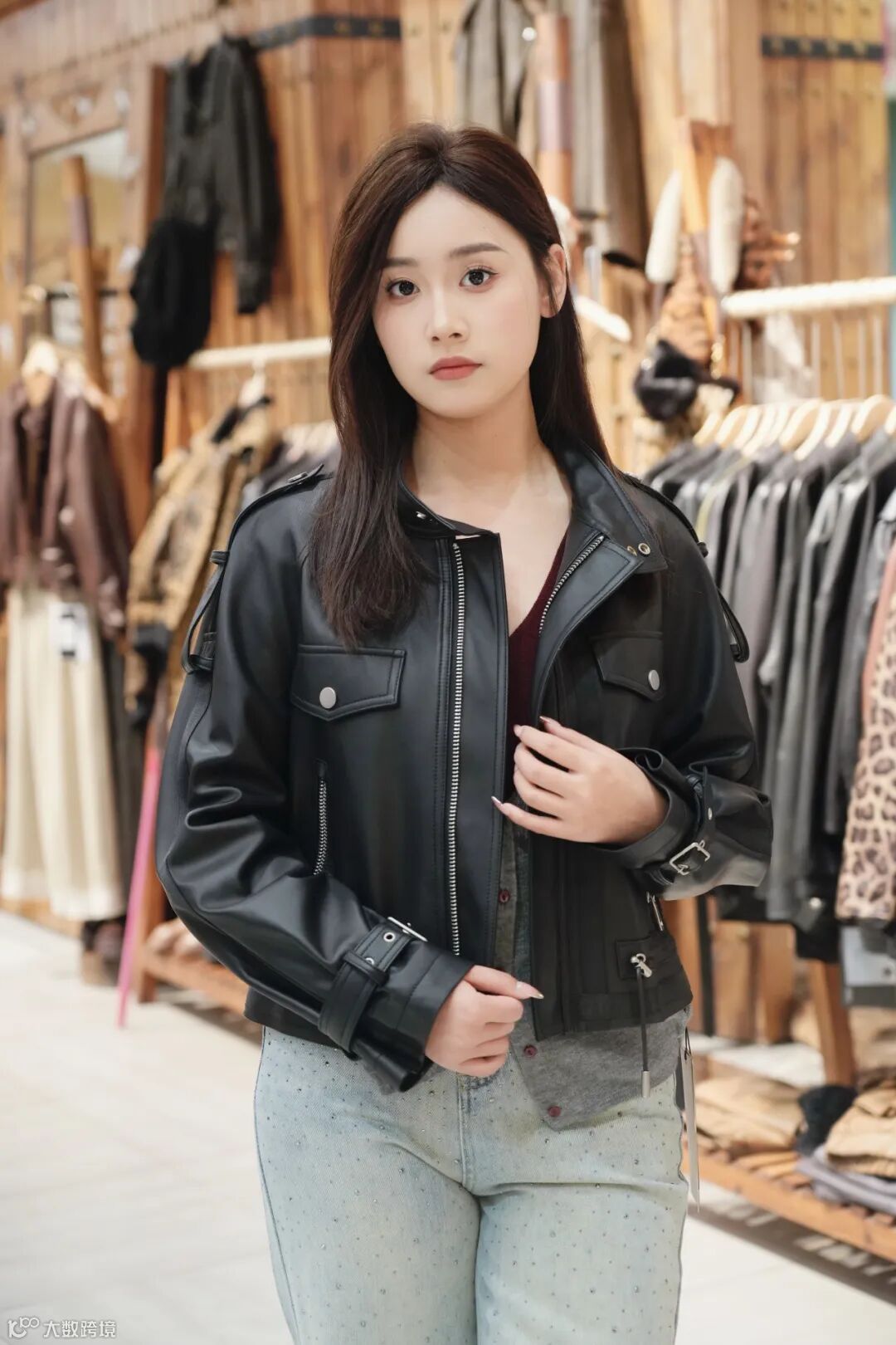 无需费心搭配的皮衣造型,立领款式,清爽干练,随便搭配很帅气!