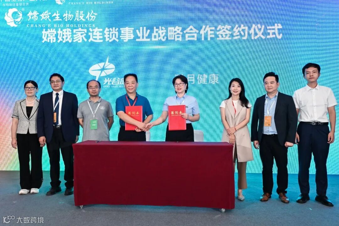 光谷康服董事长林国华先生与武汉融月健康科技有限公司董事长于红艳女士代表双方企业,正式签署“嫦娥家连锁事业战略合作协议”。