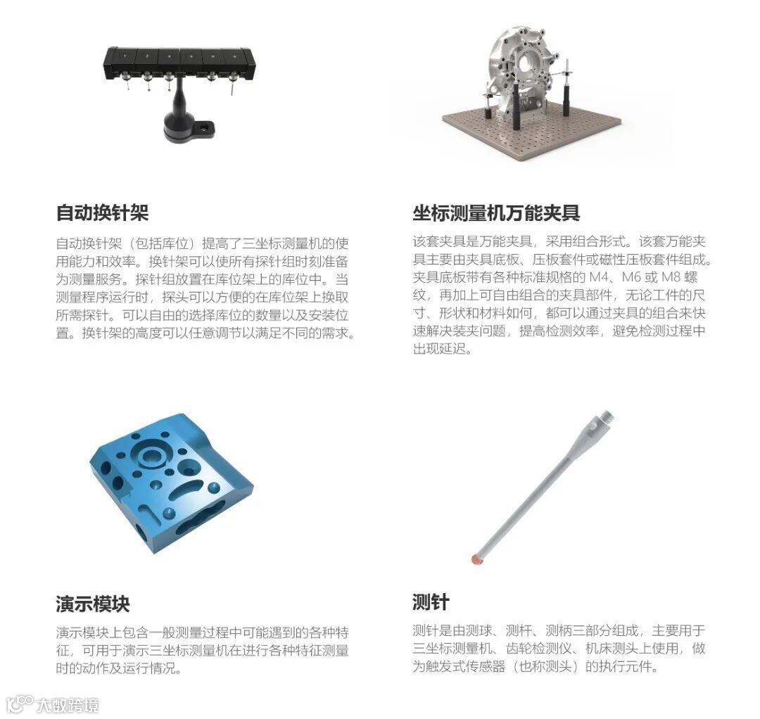 配件:自动换针架、夹具、演示模块、测针