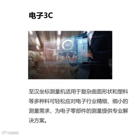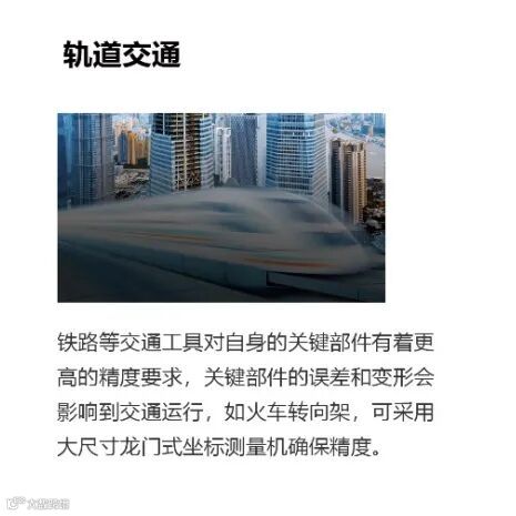 至汉装备始终致力于为客户提供高精度、高稳定性测量解决方案,公司所研发的坐标测量仪目前被广泛应用于航空航天、军工、3C、机械、模具、汽车、轨道交通、光学元件、医疗器械、能源等行业领域。