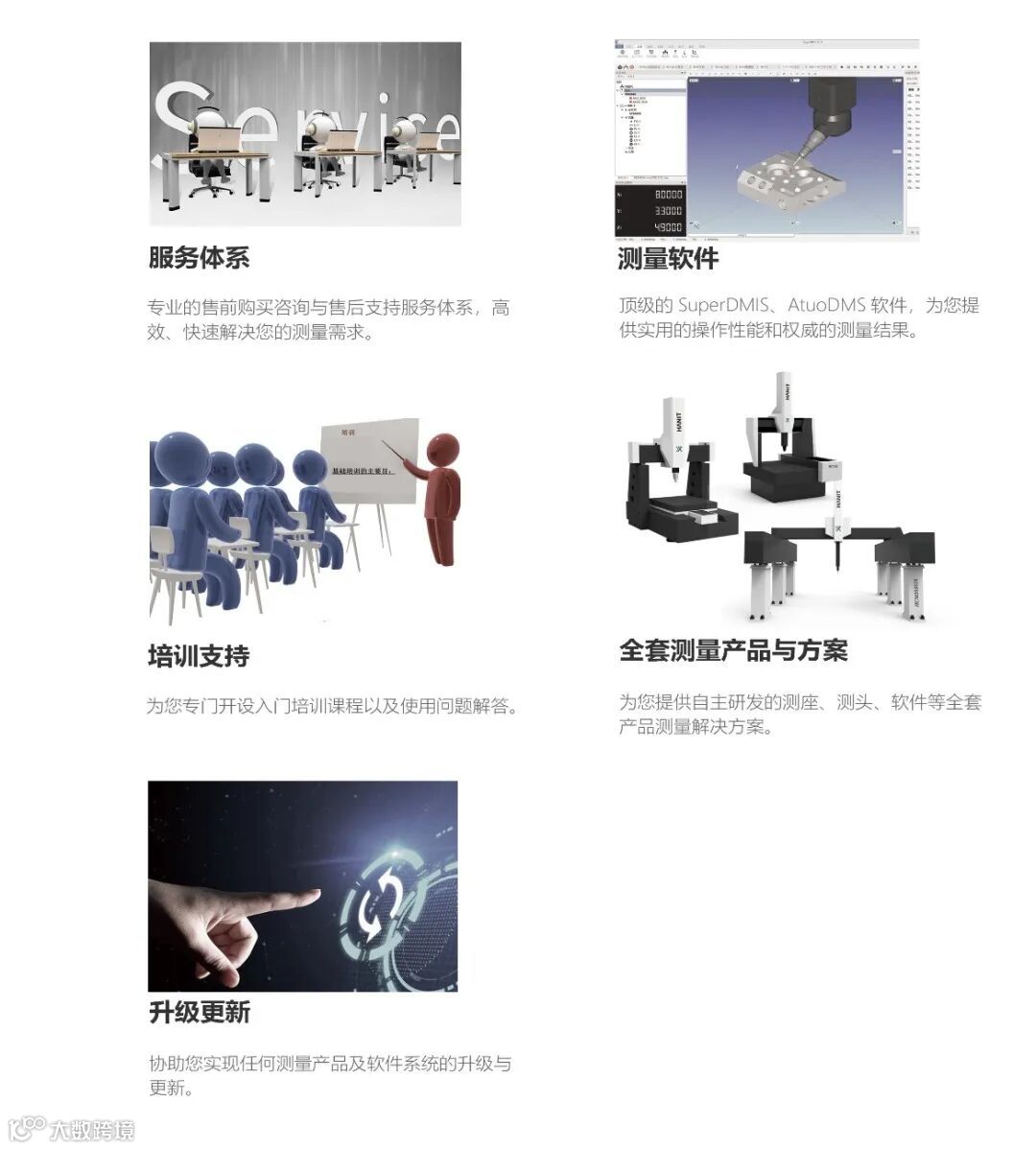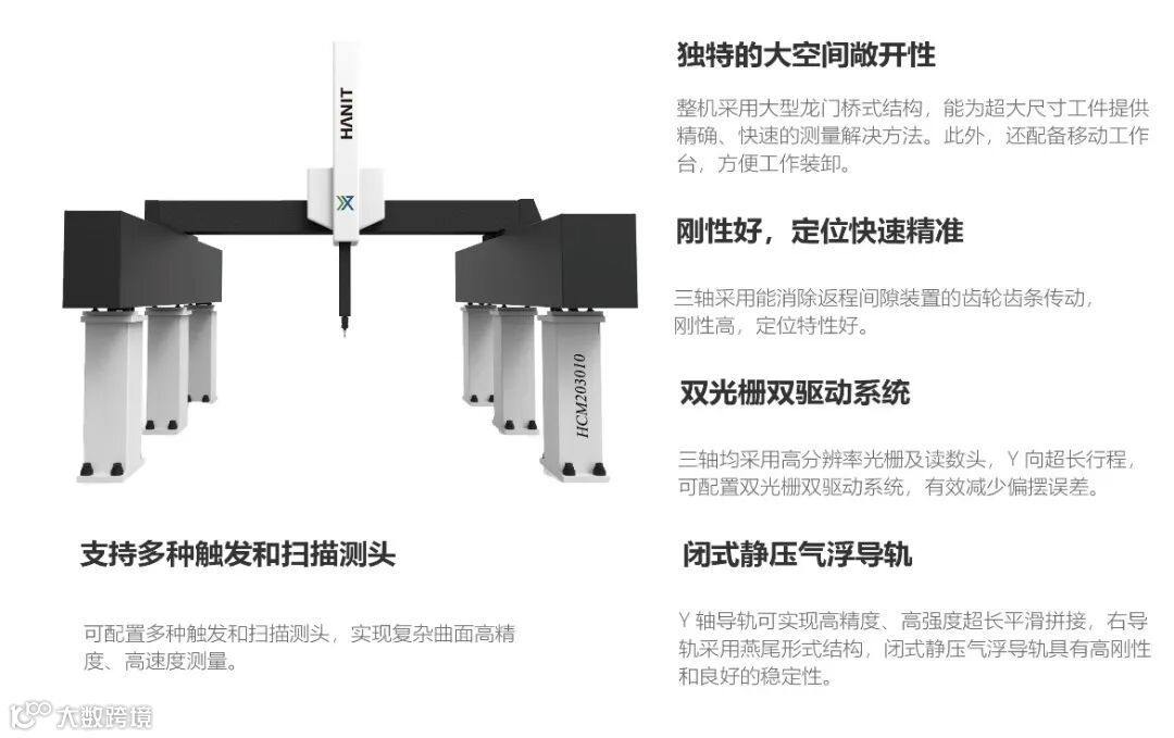 整机结构紧凑,减少车间占地使用面积,采用直线导轨设计,保证运动平稳性,是满足用户车间生产测量需求的高精准测量设备。