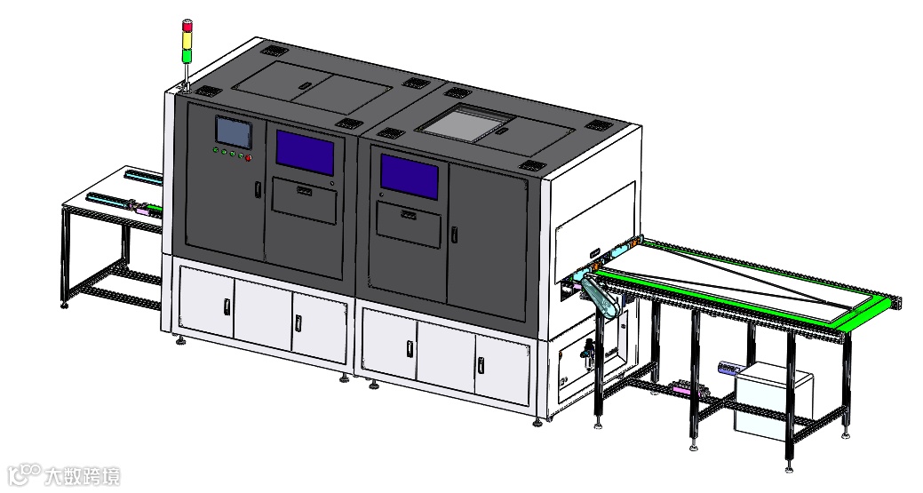 在第一代机的基础上,至汉装备并没有止步不前,仍然在不断地进行升级优化。经过分析,由于气缸的动作周期最高只能稳定在3pcs/s的速度上,限制了磁瓦的分料速度。而又为了考虑拍照的清晰度故而限制了皮带的速度,所以无法采取差速的形式进行分料。经过不断的研究实验,拍照的速度限制终于被打破了。工程师们通过对相机光源的优化,使得即使在很高的皮带速度下(200mm/s),设备依然能够保证较高的拍照清晰度。