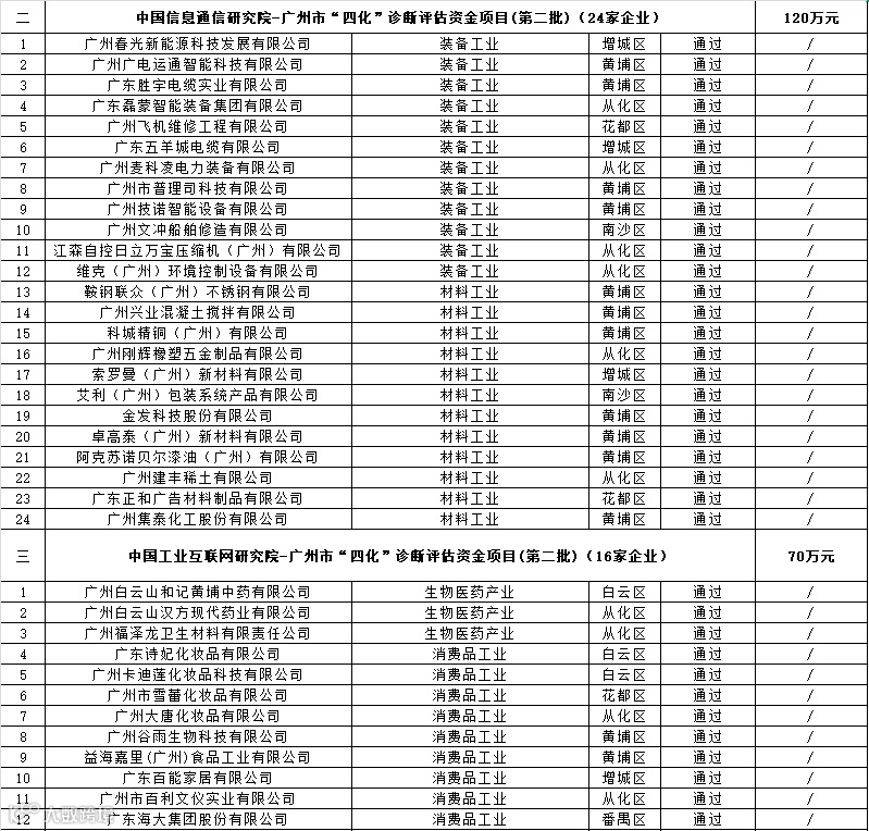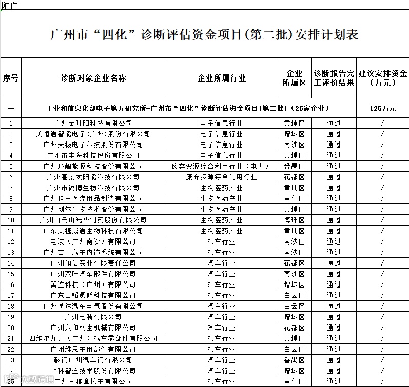 广州市工业和信息化局关于广州市“四化”诊断评估资金项目(第二批)安排计划的公示