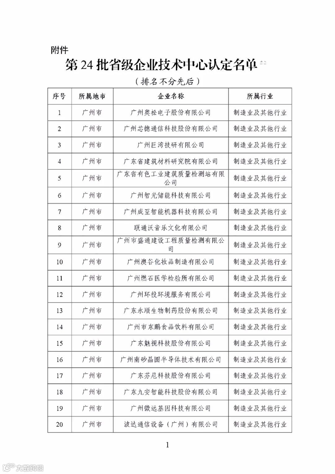 广东省工业和信息化厅关于印发第24批省级企业技术中心认定名单的通知