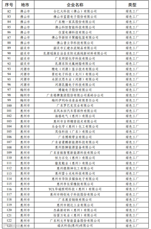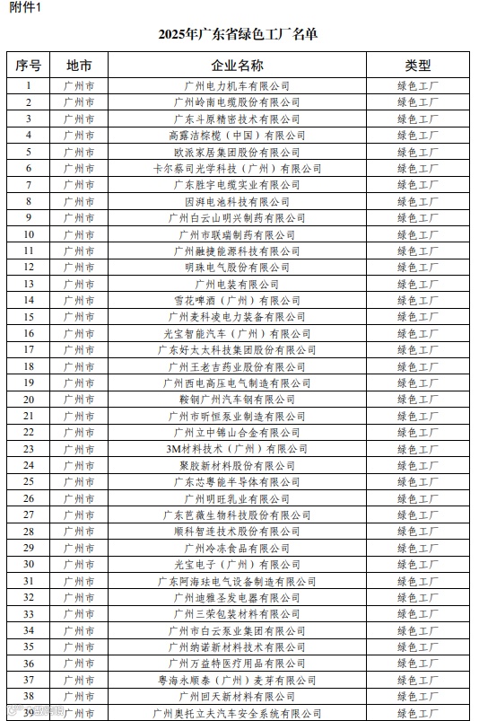 广东省工业和信息化厅关于公布2025年度广东省绿色制造名单的通告