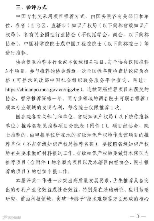 近日,国家知识产权局发布关于评选第二十六届中国专利奖的通知。