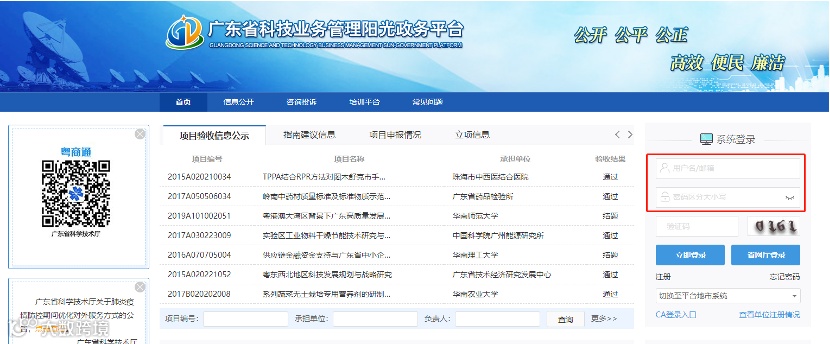 打开“广东省科技业务管理阳光政务平台”网站:http://pro.gdstc.gov.cn/egrantweb/