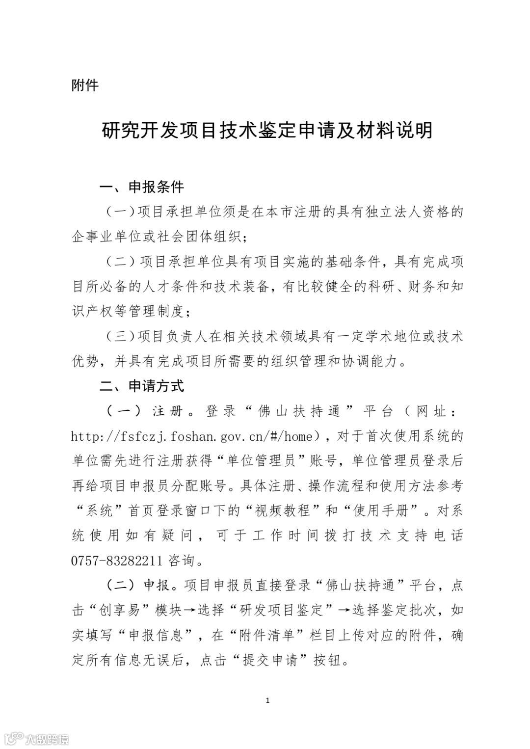 https://fsfczj.foshan.gov.cn/#/businessEnjoyEasy/index进行技术鉴定的申报,本次技术鉴定无需付费和提交纸质材料。