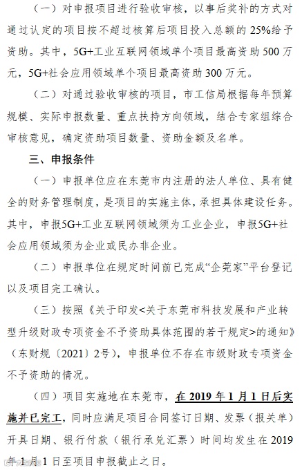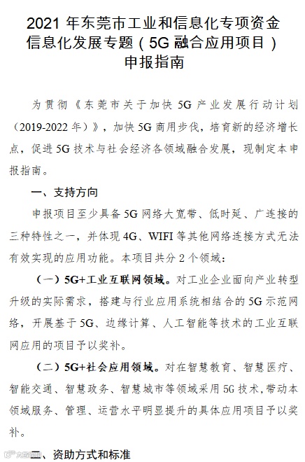 附件:2021年东莞市工业和信息化专项资金信息化发展专题(5G融合应用项目)申报指南