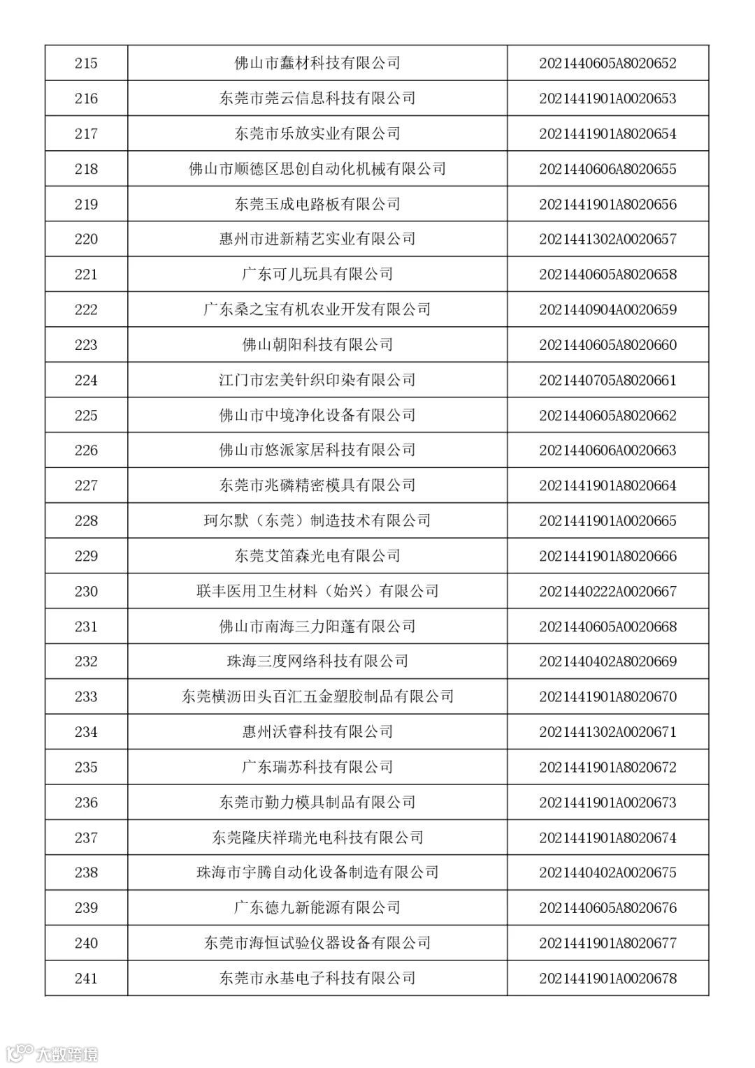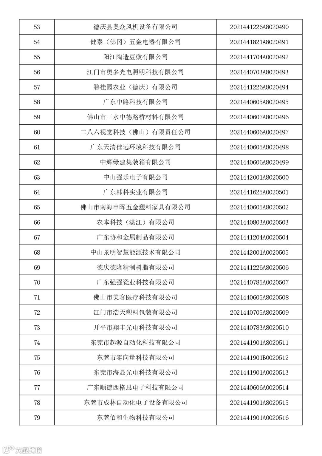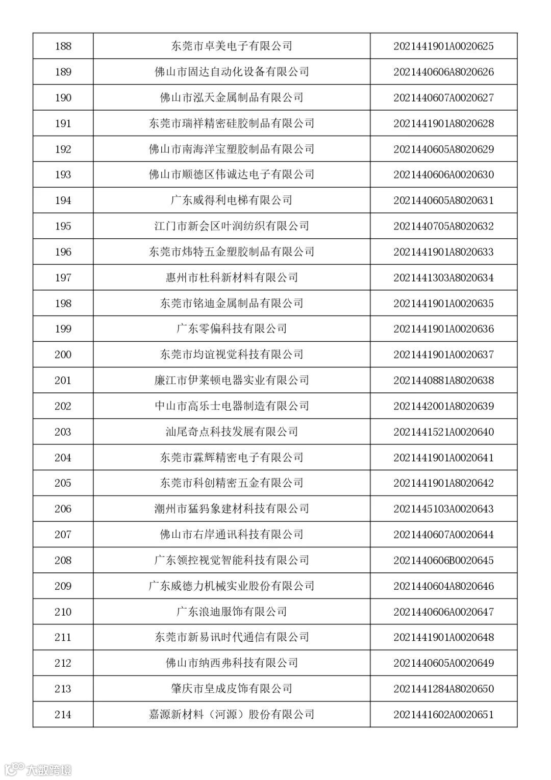 广东省2021年第七批入库科技型中小企业名单
