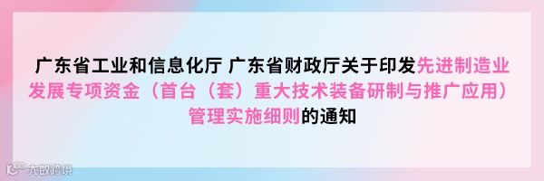 现将《广东省工业和信息化厅 广东省财政厅关于先进制造业发展专项资金(首台(套)重大技术装备研制与推广应用)管理实施细则》印发给你们,请遵照执行。执行中如遇问题,请径向省工业和信息化厅、省财政厅反映。