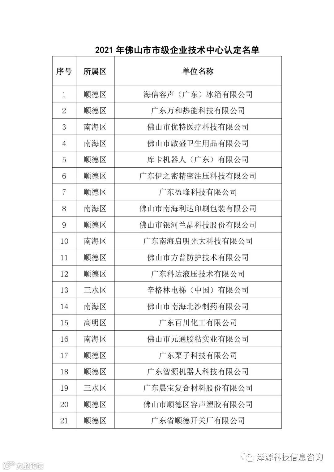 根据《佛山市人民政府办公室关于印发佛山市市级企业技术中心管理办法的通知》(佛府办〔2016〕34号)、《佛山市工业和信息化局关于组织开展2021年佛山市市级企业技术中心认定工作的通知》(佛工信函〔2021〕231号)等有关规定,经按程序审核、公示,现认定海信容声(广东)冰箱有限公司等33家企业(集团)技术中心(名单见附件)为2021年佛山市市级企业技术中心,并予以公布。