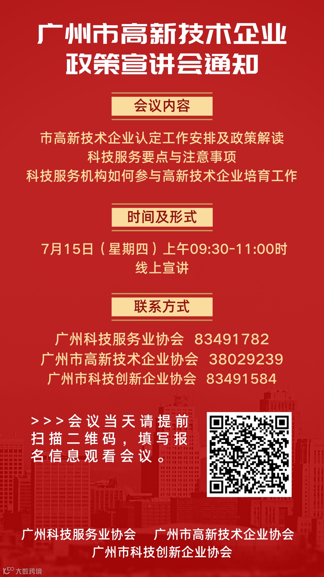 通知!!! 广州市高新技术企业政策宣讲会通知