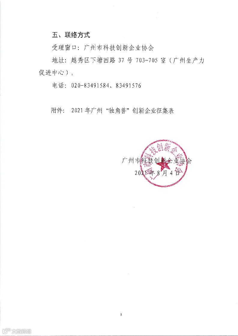 附件. 2021年广州“独角兽”创新企业征集表