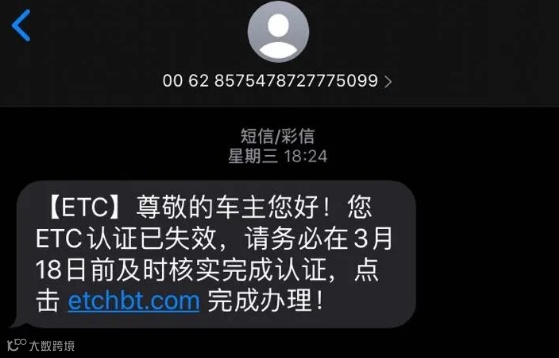 市民小康(化名)收到一个陌生号码发来的短信,称其办理的ETC需要认证,让他点击一个链接完成认证。由于小康刚办理ETC不久,他并没有怀疑就点击链接进去了。