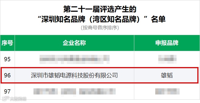 近日,深圳知名品牌评价委员会召开了第二十一届“深圳知名品牌”评审会议。经过层层严格遴选,雄韬股份凭借优秀的品牌影响力、科技创新力、市场表现等优势,成功入选新一届“深圳知名品牌”,并同时授予“湾区知名品牌”称号。这也是继SENRY之后,雄韬股份又一个获得“深圳知名品牌”的商标。
