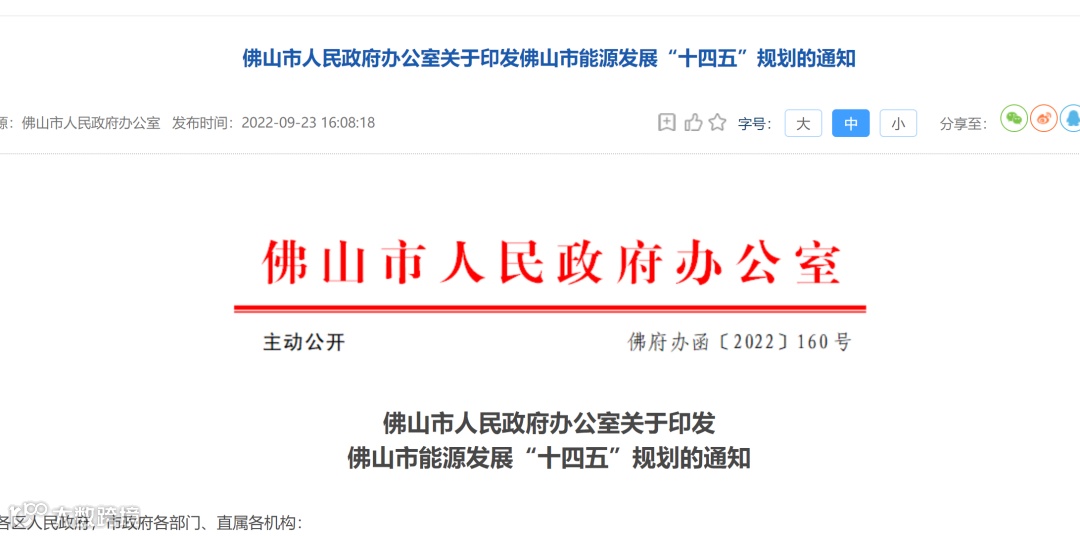 9月30日,《佛山市能源发展“十四五”规划》印发,其氢能方面指出: