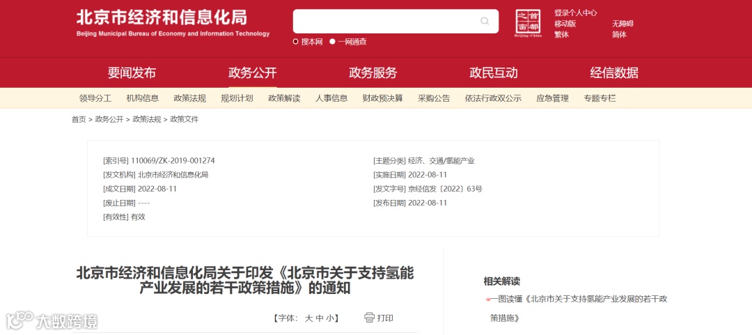 8月11日,北京市经信局印发了《北京市关于支持氢能产业发展的若干政策措施》。