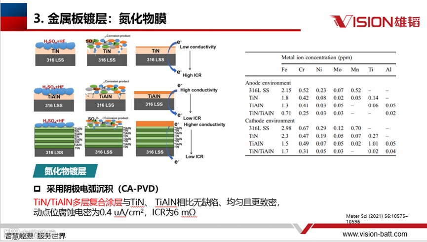 但不锈钢基材也有一些缺陷需要克服,比如在酸性条件下耐蚀性较差,离子析出损伤PEM性能,表面氧化膜会导致接触电阻(ICR)较大。