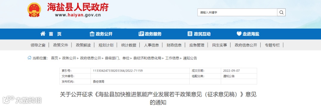 近日,海盐县人民政府印发了《海盐县加快推进氢能产业发展若干政策意见(征求意见稿)》。