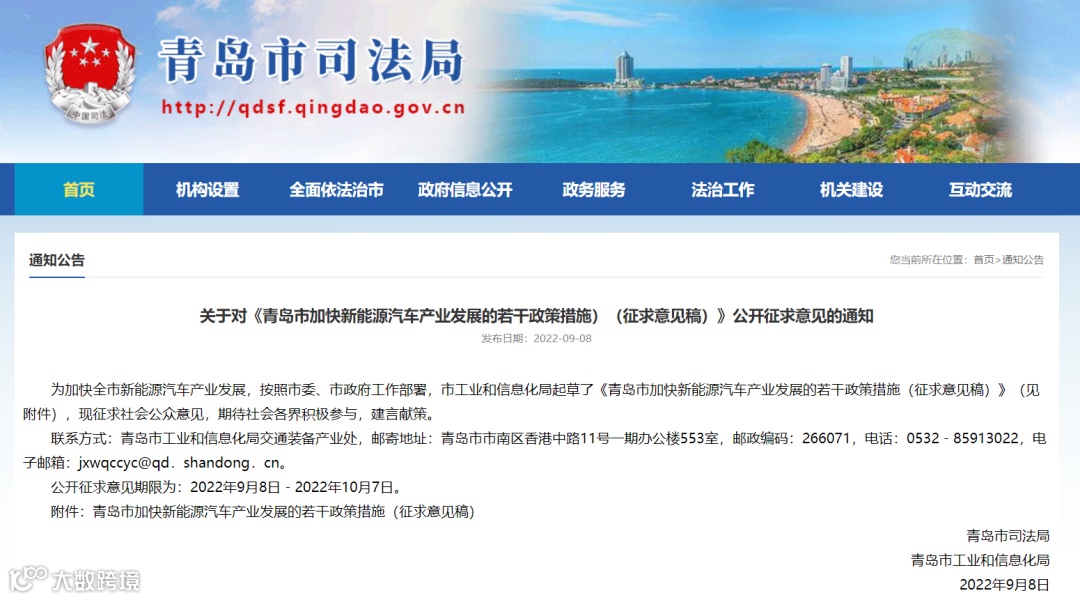 9月8日,青岛市发布《青岛市加快新能源汽车产业发展的若干政策措施(征求意见稿)》(以下简称《意见稿》)。