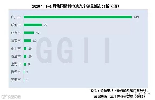 1-4月国内燃料电池汽车销量集中在广州