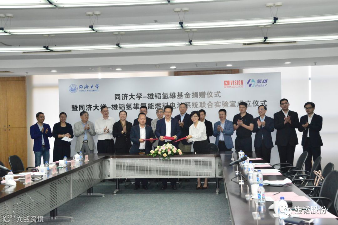 雄韬氢雄与同济大学共同签署了《关于设立“同济大学雄韬氢雄基金”的捐赠协议书》《共建“氢能燃料电池系统联合实验室”的合作协议》。