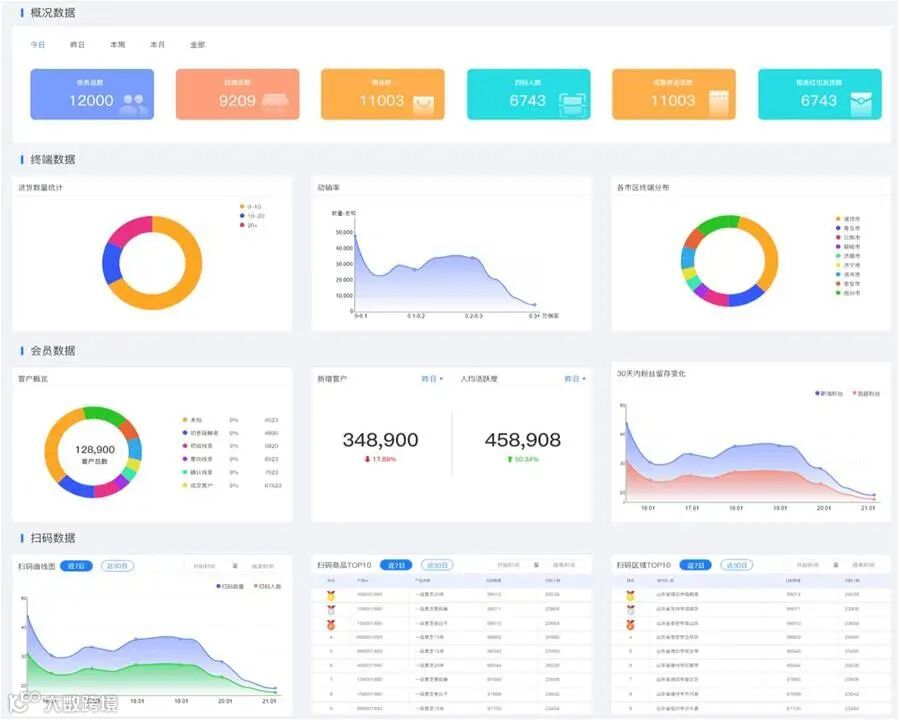 将企业各平台数据汇集,利用智盈强大的数据处理能力,从数据层面为企业提供总览全局的“上帝视角”:如产品整体销量走势、不同人群消费特征、某次营销活动数据分析、同一产品在不同区域的销量对比等。