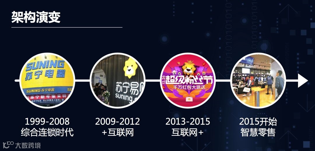 2006年,SAP/ERP上线,被誉为世界零售业灯塔工程;2009年,CRM平台上线,雨花数据中心建立。这一阶段,苏宁凭借稳健高效的技术落地,多次蝉联中国商业零售业信息化冠军。