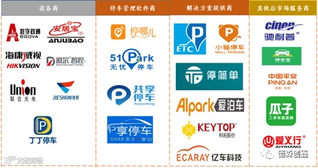 安防设备供应商:由于在视频技术、可视化管理、门禁管理等综合能力方面比其他竞争者有着独特的优势,通过技术衍生至智慧停车行业。代表性的企业包括海康威视、大华股份、宇视科技等安防设备供应商都在发力停车场业务。