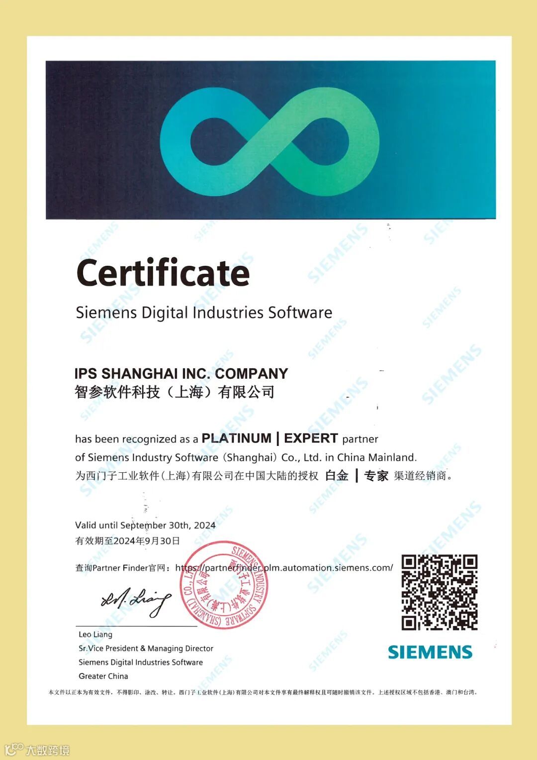 作为西门子的白金|专家合作伙伴,智参科技一直致力于为客户提供优质的服务和完善的解决方案。此项资质的获得是对我们过去努力和成就的肯定,同时也是对我们未来发展的期许。