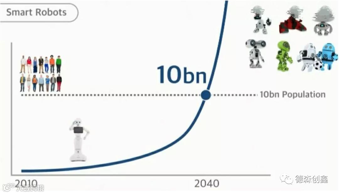 AI,并不是单个的个体,他是一个结合大数据的万物互联的整体系统。所以我可以很大胆的告诉大家:2040年之后,机器人的数量,将超过人类的人口数量。