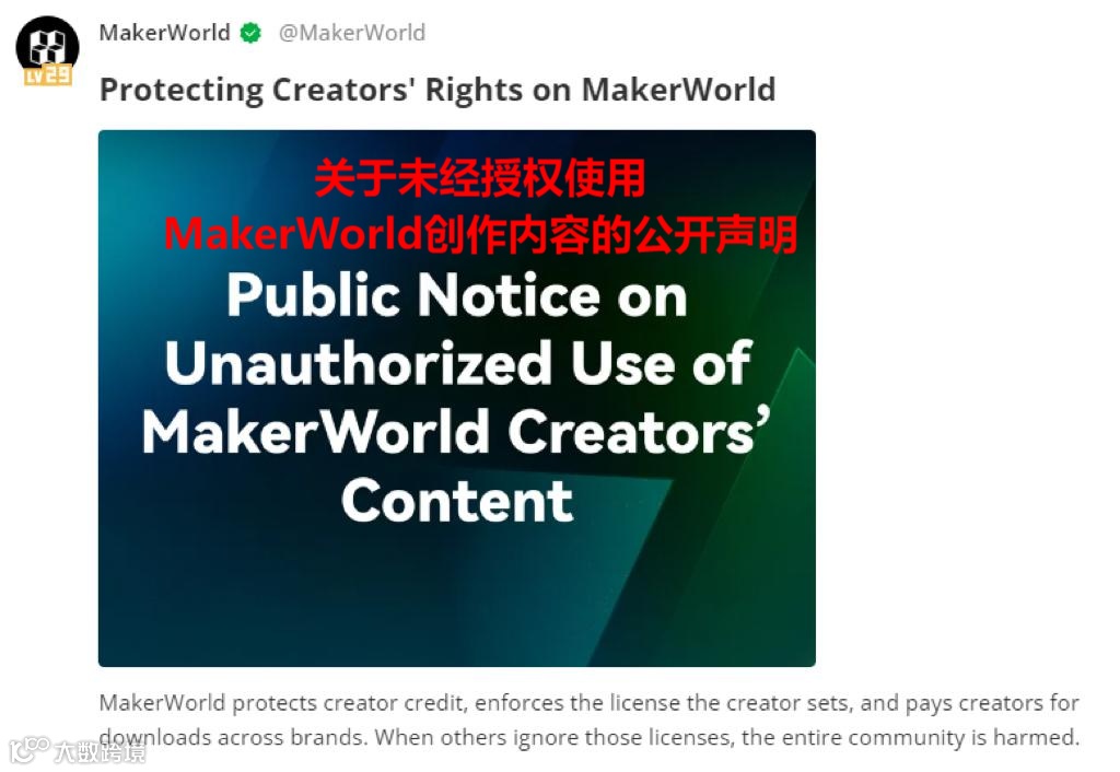 拓竹科技反侵权声明 图源:MakerWorld