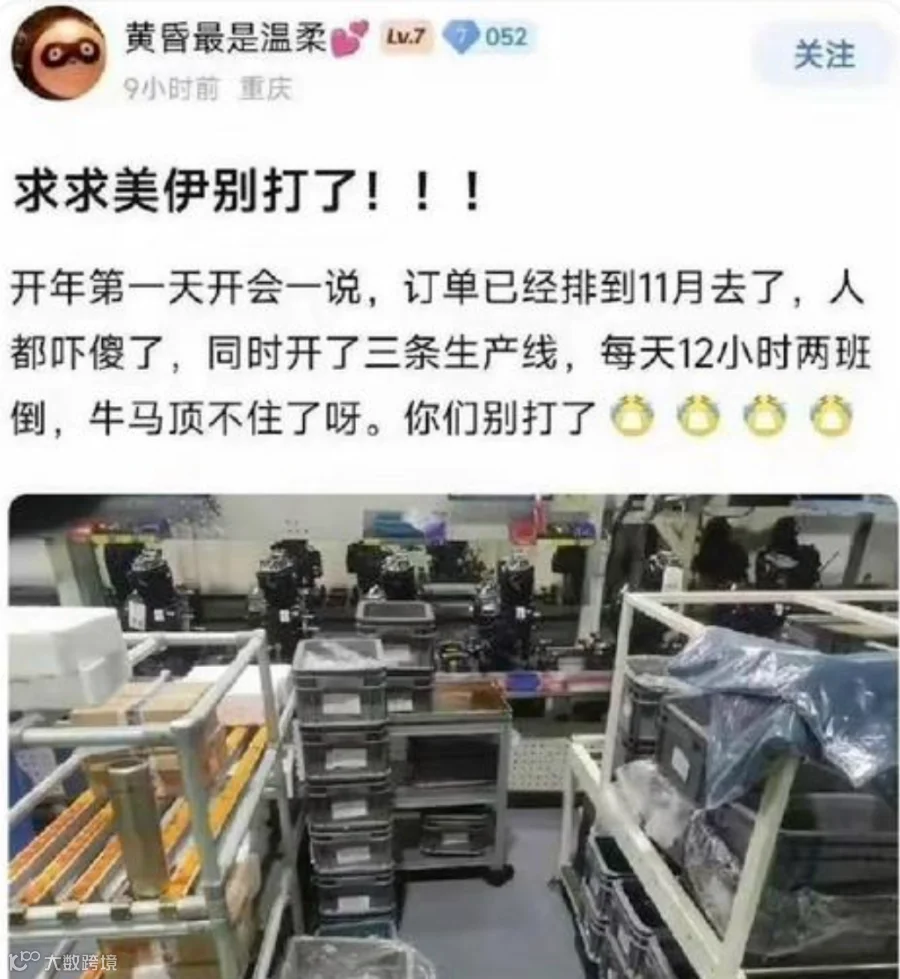 近日,一位重庆网友爆料,因为战争,自己所在的无人机工厂因海外订单暴增,彻底陷入超负荷运转。工厂三条生产线全线开启,订单直接排至11 月。