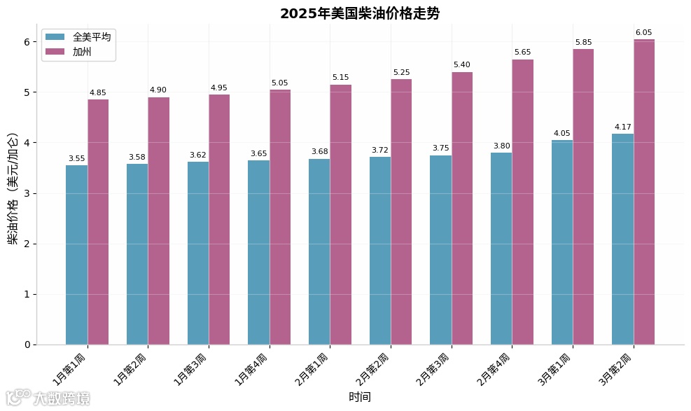 - 加州柴油税费高达97.1美分/加仑,显著高于全美平均水平。