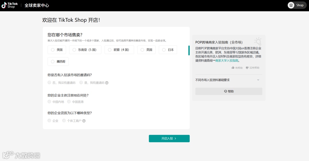根据目标市场选择入驻站点;除东南亚外,其余站点暂不支持个体工商户入驻。