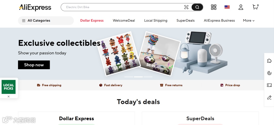 AliExpress 是阿里系面向全球消费者的零售平台,供应链以中国制造为主,支持小包直邮与菜鸟物流,尤其友好小额跨境外贸、低起订量卖家。其市场覆盖欧美、俄罗斯、南美和东南亚等区域,适用品类包括轻小商品、配件、电子配件、服饰、家居小件等。最适合中国工厂、代工厂、小批量外贸卖家以及采用“样品—直邮”模式的跨境卖家。